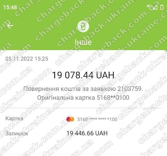 В эти нелегкие времена мы продолжаем работать: 05.11.2022 возврат (chargeback) из Lime FX 19 078,44 грн