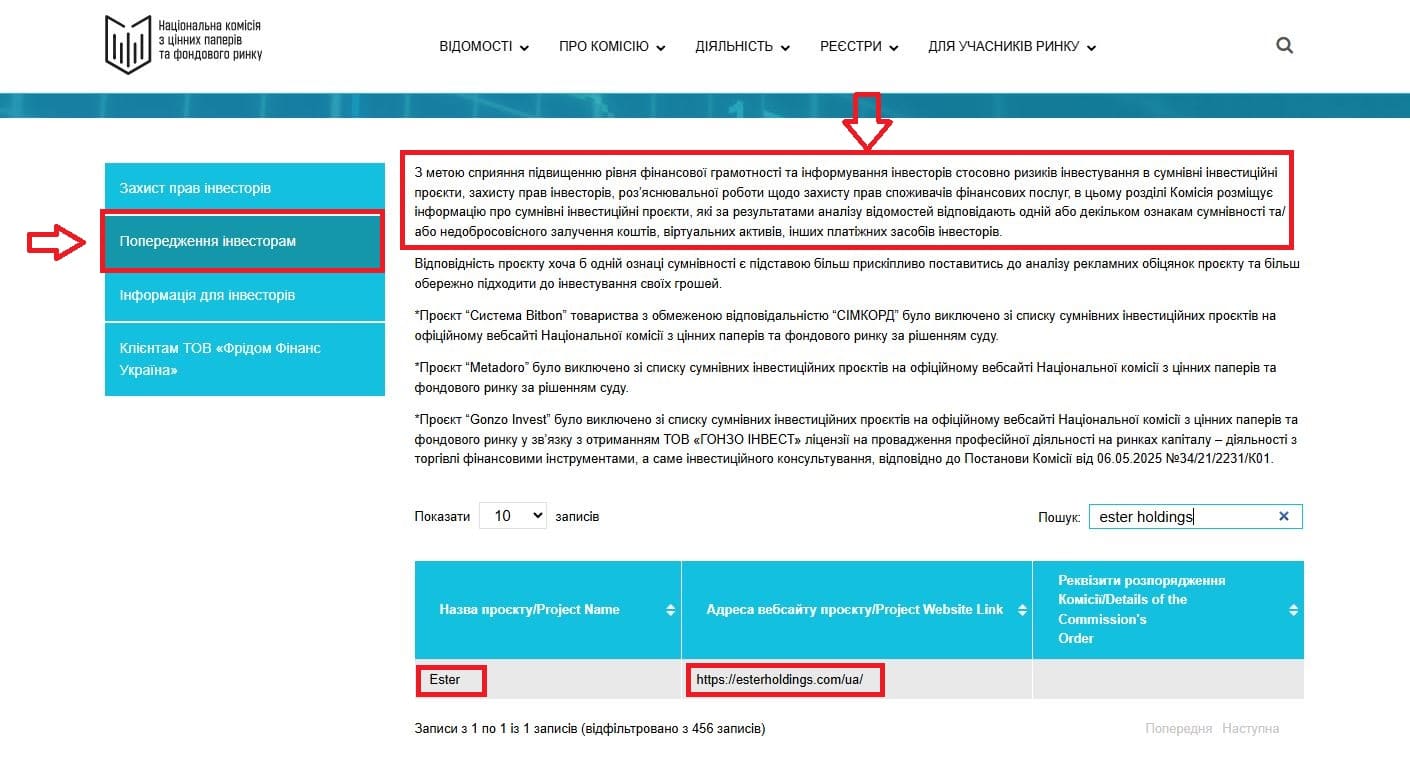 Напоминаем, что брокерская компания Ester Holdings (Эстер Холдингс) столкнулась с рядом обвинений в мошенничестве и негативных отзывов клиентов. Кроме того, Ester Holdings подвергался критике со стороны регулирующего органа Украины (НКЦПФР).