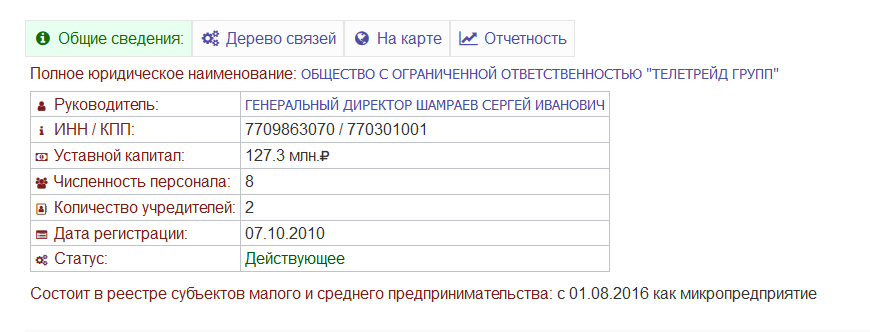 Само ООО «Телетрейд Групп» имеет следующие данные: